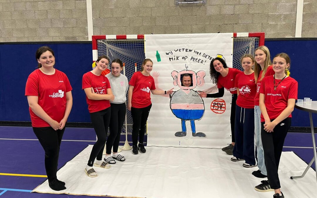 En toen… tijd voor De Alleskunner! 💪 Een strijd waarin iedereen z’n talent kon laten zien. Olifanten-zaklopen 🐘, een verzwaarde bal zo ver mogelijk werpen 💥, babyfoto’s van de leiding raden (ook wel “Leiding In Luiers” genoemd. Ook zeker niet makkelijk!🫣) en een parcours trotseren. Niets was te gek. Maar het absolute hoogtepunt van deze ronde? De hilarische “Doe het beter, mik op Peter!” slagroomuitdaging! 🥧 Met volle overtuiging gooiden de deelnemers richting Peter. Ohja en het doek wat jullie zien; daarvoor zijn de credits aan de meiden die het doek versierden met een aangeDIKTE, maar oh-zo-grappige karikatuur die iedereen aan het lachen kreeg!