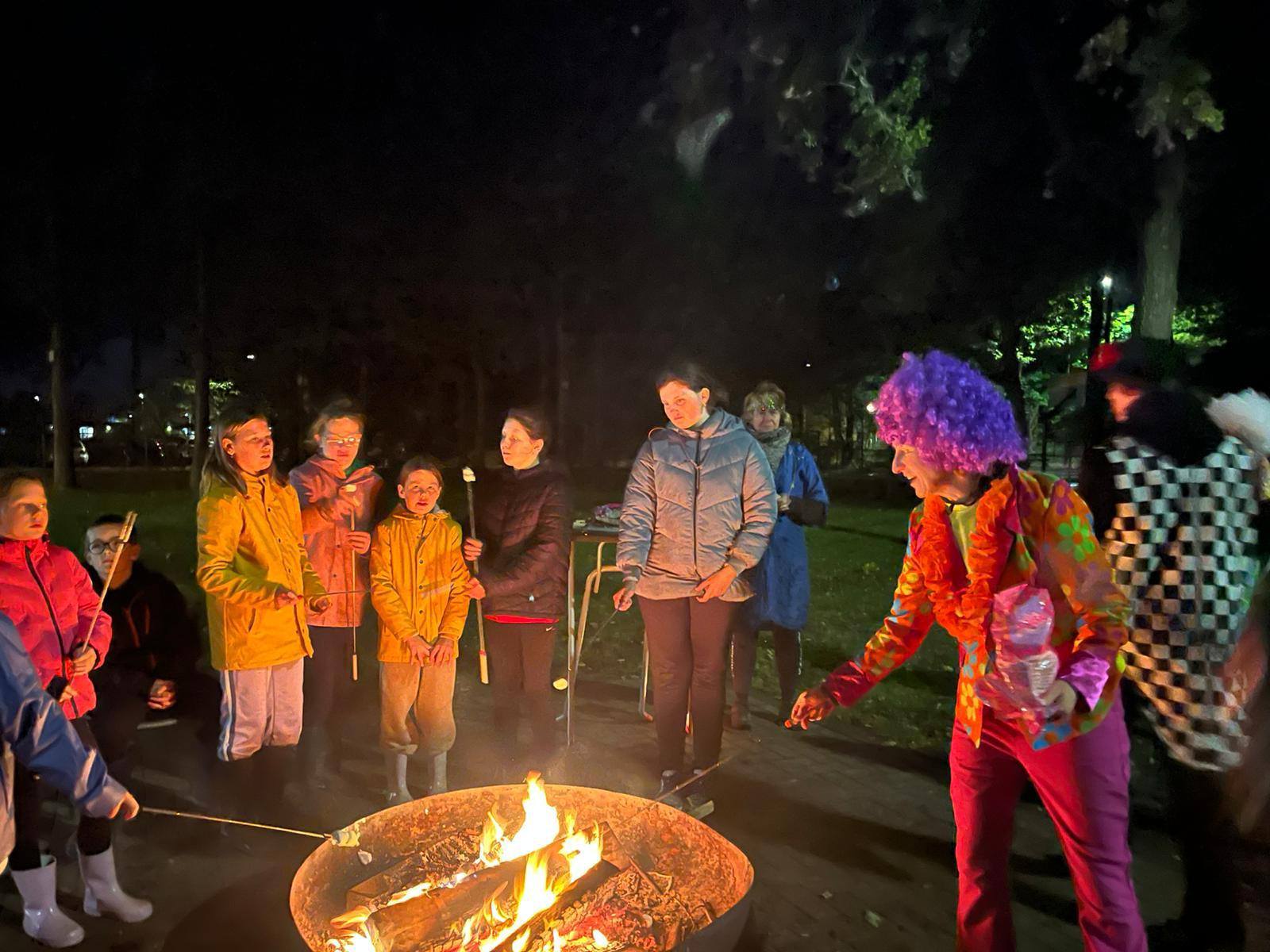 De zon zakte weg en de bosrand werd donker. Eén voor één werden de groepjes naar buiten geroepen, waar ze oog in oog kwamen te staan met een geheimzinnige heks 🧙‍♀️. Zij vertelde het verhaal van een oud circus dat ooit in het bos van Liempde stond, maar op mysterieuze wijze was verdwenen. Alleen de geest van het circus zou nog ronddwalen tussen de bomen… 😱 De teams kregen de opdracht om de verloren artiesten van dat circus te vinden in het bos en opdrachten uit te voeren. Bij elke goed voltooide taak kregen ze een letter. Samen vormden die letters de naam van het verdwenen circus.Ook daarbij is er flink genoten!