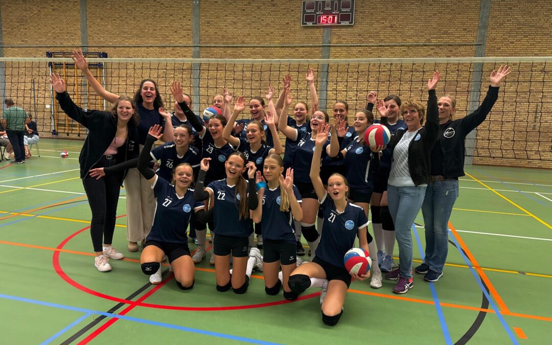 Daarna was MA aan de beurt. Na een oefenwedstrijd vorige week tegen Siok was nu de echte wedstrijd. MA krijgt dit seizoen aanvulling van de meiden van MB , wat soms voor wat onduidelijkheid zorgt. Tijdens de wedstrijd zag je dat er meer geroepen werd en dat er meer lol in het spelletje kwam. Een 4-0 overwinning was het resultaat. Tussen de wedstrijden door is er ook nog een foto gemaakt met de nieuwe wedstrijd shirts .
